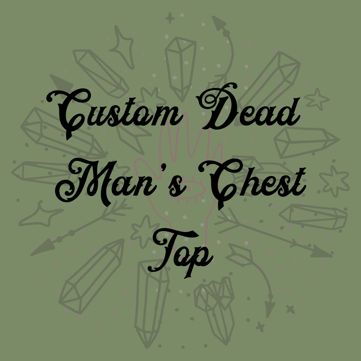 Dead men tell no tales, but this top is certainly a conversation starter. Distressed black linen decorated with soft plastic skeletal hands will let everyone know what happened to the last sailor who crossed you. Custom Dead Man's Chest tops feature decorative bead strings and bone charms with fully decorated straps.